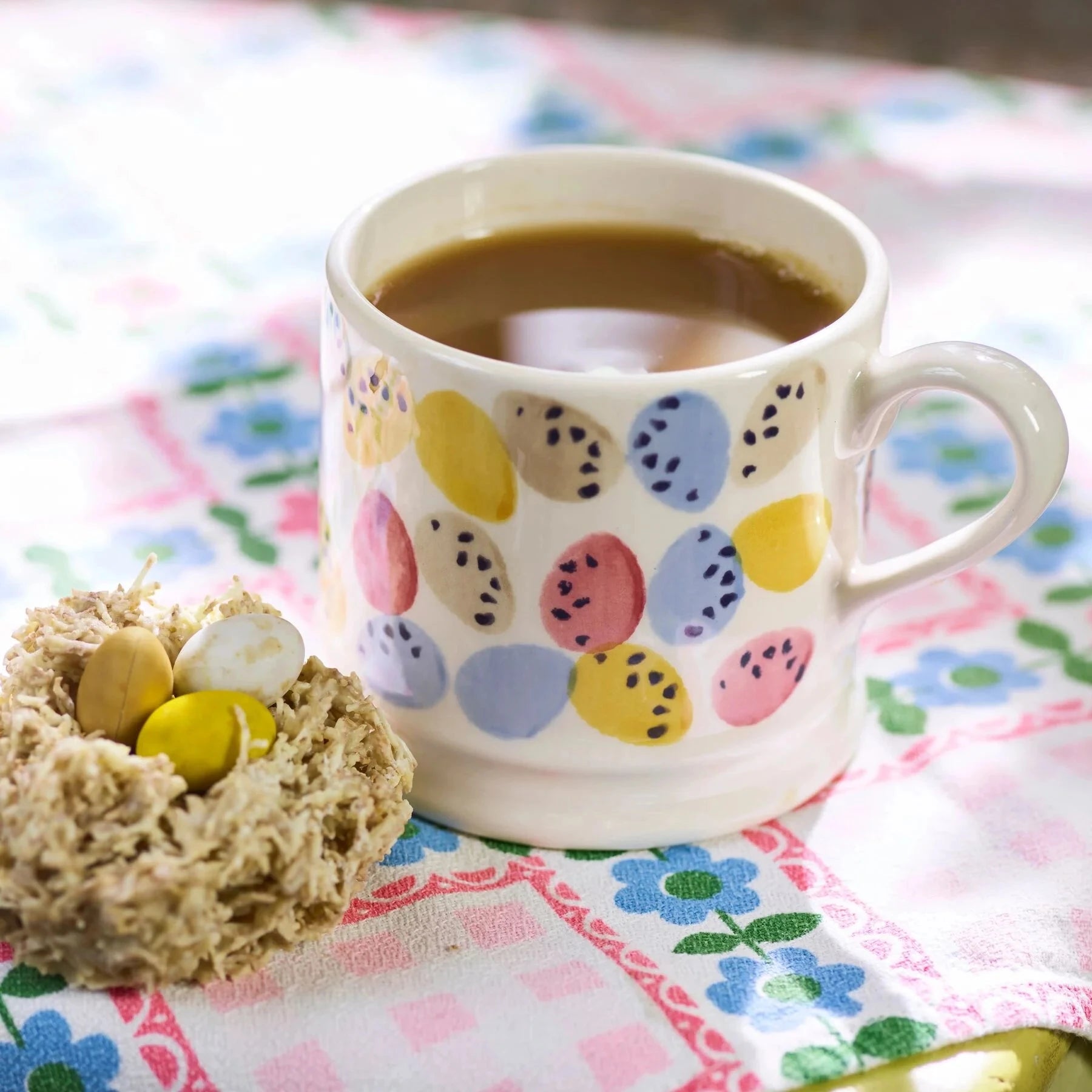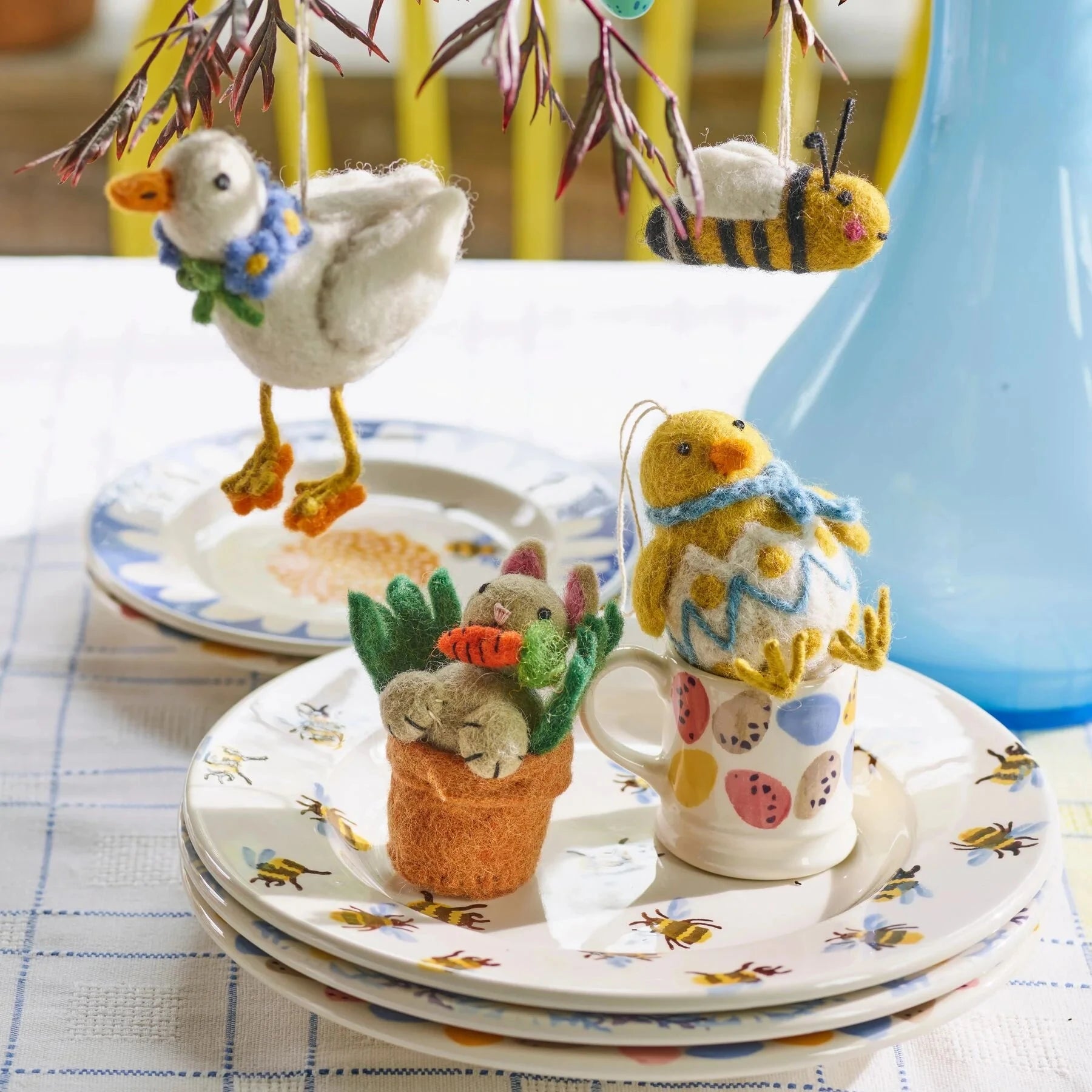 Give pride of place to regal hen-on-nest, right in the centre of the table, her broody feathers protecting all manner of sugar mice and chocolate eggs hidden beneath.
